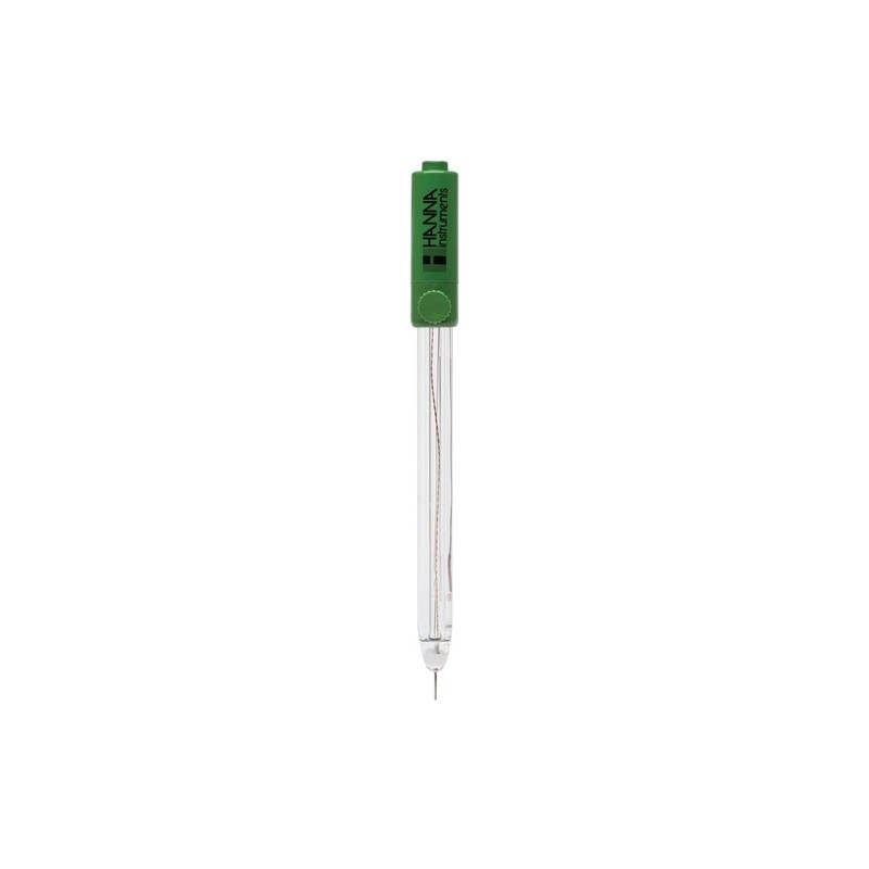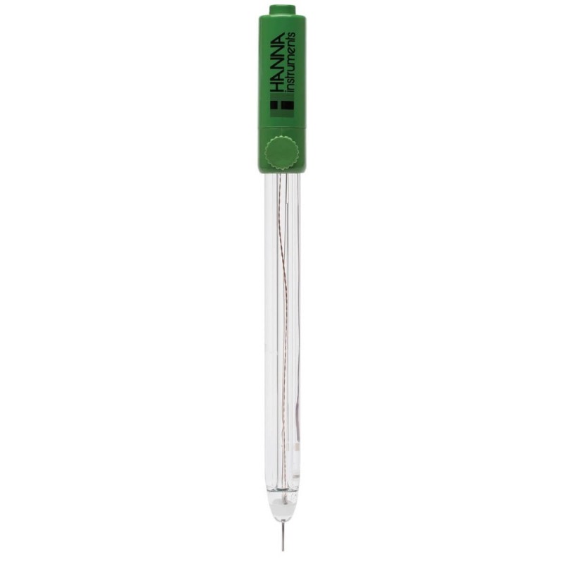El HI36183 es un electrodo de ORP con cuerpo de vidrio, rellenable, con unión simple y sensor de temperatura integrado, así como un conector rápido DIN. Este tipo de conector es específico para medidores como el HI98190 de Hanna Instruments.