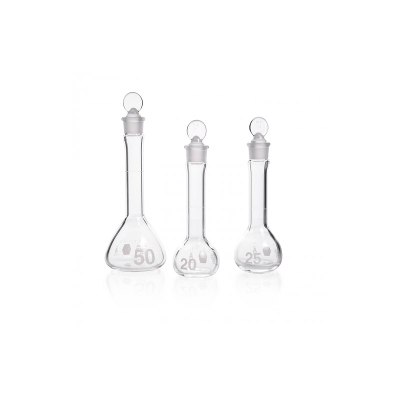 Calibrado para contener y cumplir con tolerancias volumétricas de Clase A para matraces de boca ancha