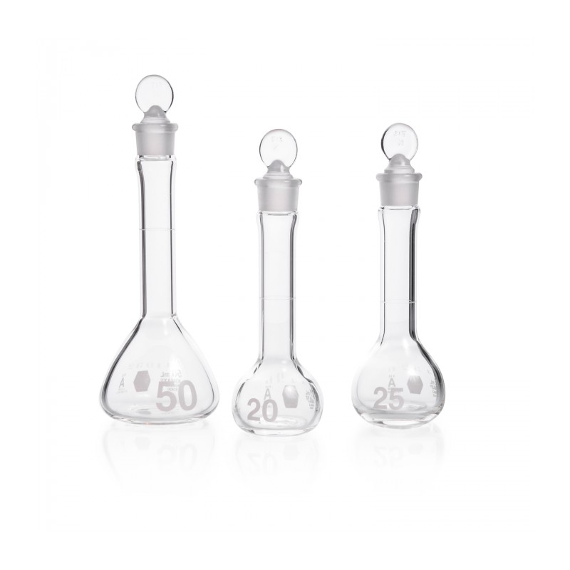 Calibrado para contener y cumplir con tolerancias volumétricas de Clase A para matraces de boca ancha